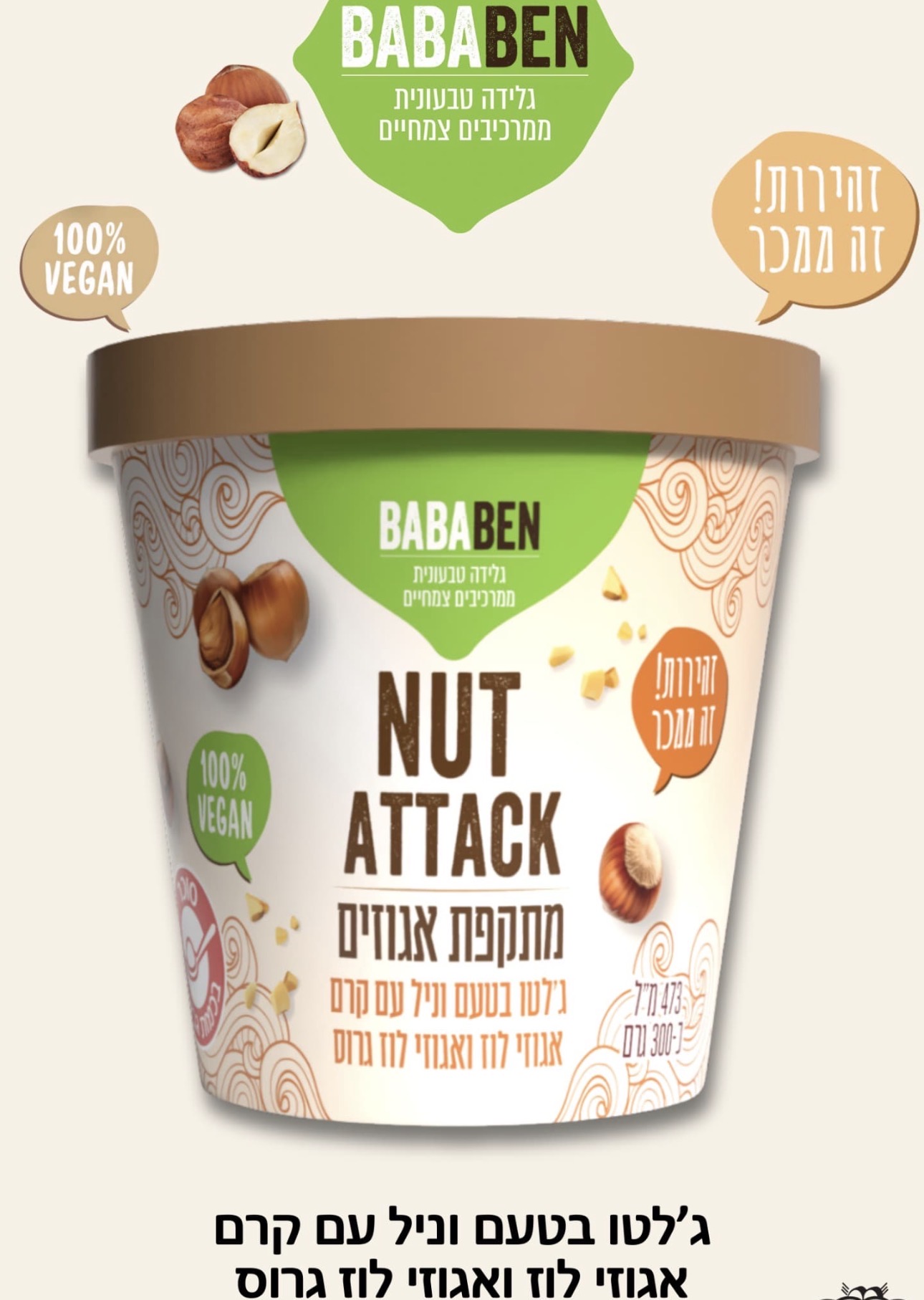 גלידה טבעונית ג׳לטו וניל קרם אגוזי לוז ואגוז לוז גרוס | BABABEN