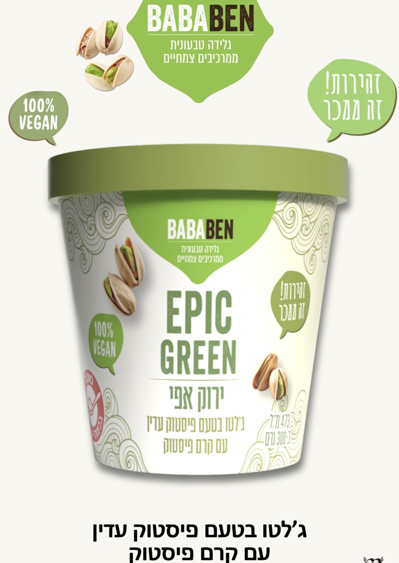 גלידה טבעונית ג׳לטו פיסטוק עדין וקרם פיסטוק | BABABEN